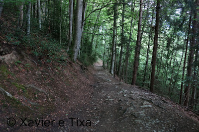 Iniciamos a caminhada em Unterseen(588m) e enfiamo-nos na floresta que vai mudando à medida que vamos ganhando altitude, de vez em quando tem-se vistas para o trio maravilha da região, Eiger, Monch e Jungfrau, infelizmente o dia manteve-se nublado.
