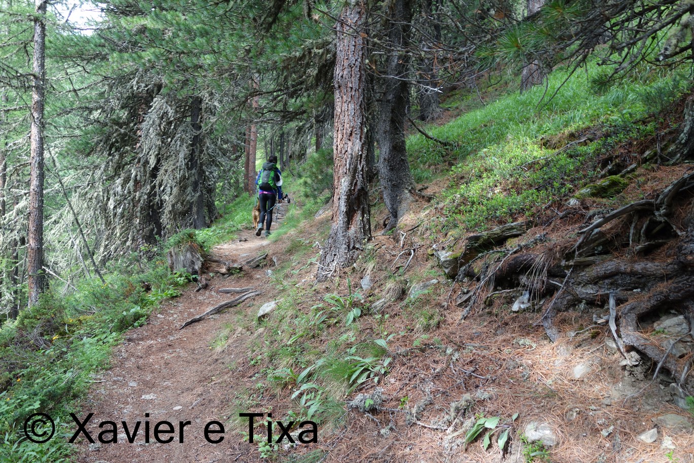 A descida foi pelo mesmo corredor mas em vez de descermos pela zona do teleférico passei no colo La Forcla e descemos directamente por um trilho pouco nítido até chegar a um estradão, dai passamos para o trilho de pé posto e daí a regressar a Arolla foi um pulo, o tempo que parecia degradar-se acabou por ficar melhor para o final da tarde.