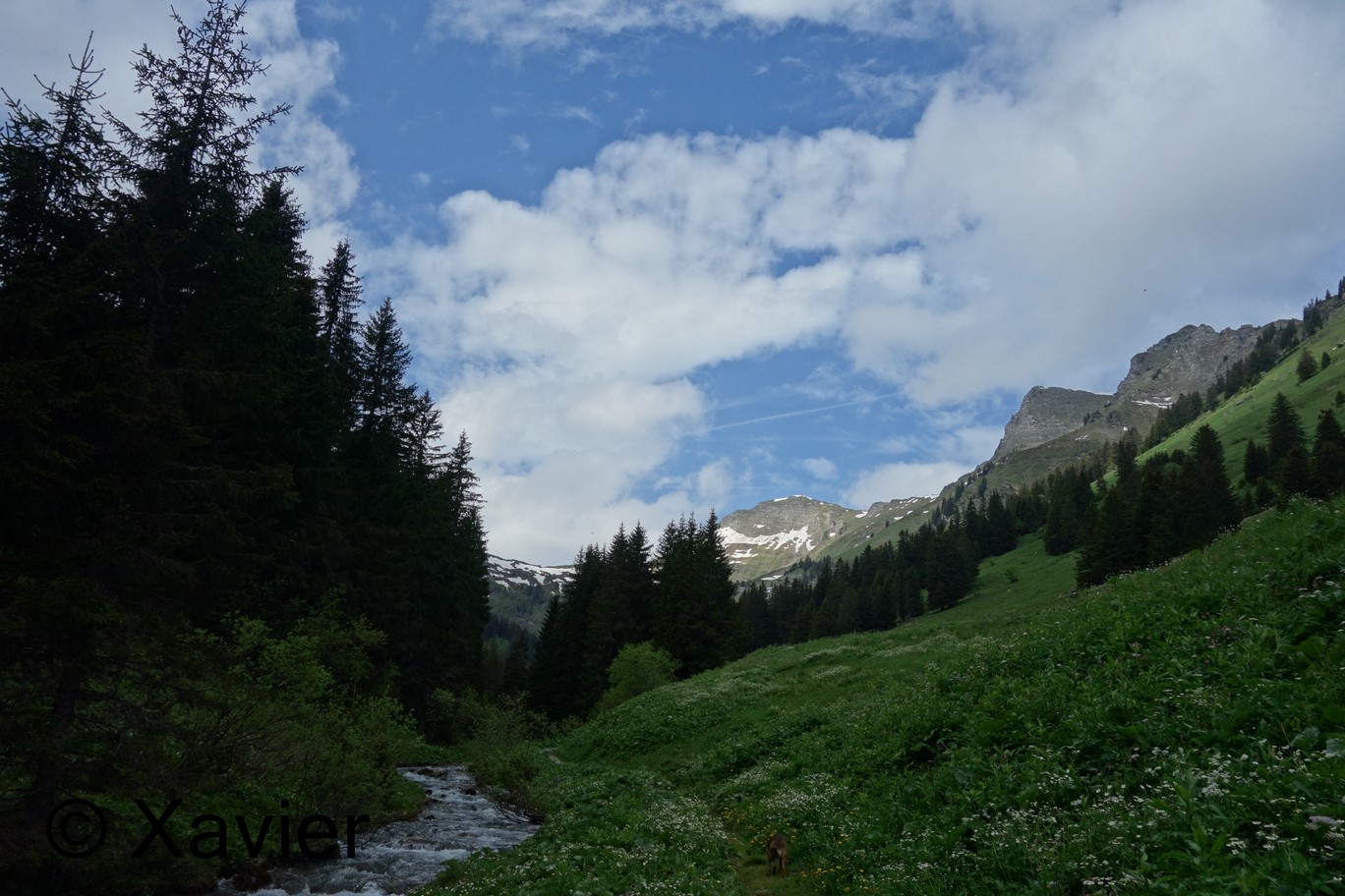 Na carta não existe nenhum trilho para Norte mas como havia um carreiro visível segui para Norte rumo ao Pas de la Chaux des Rosés, mesmo antes de chegar ao colo há uma secção com escadas, impossível para a Xarah descer, recuei um pouco e consegui descer por outro sítio para o Val de Morgins, fui ter à zona do Lac de Chésery, restou-me seguir pelo mesmo caminho de regresso a Morgins, algumas horas depois chegava a anunciada tempestade.
