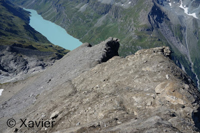 Continuing down the south there is a passage around 3250m, near a big snow blanket, the view of the Giétro glacier is fantastic.