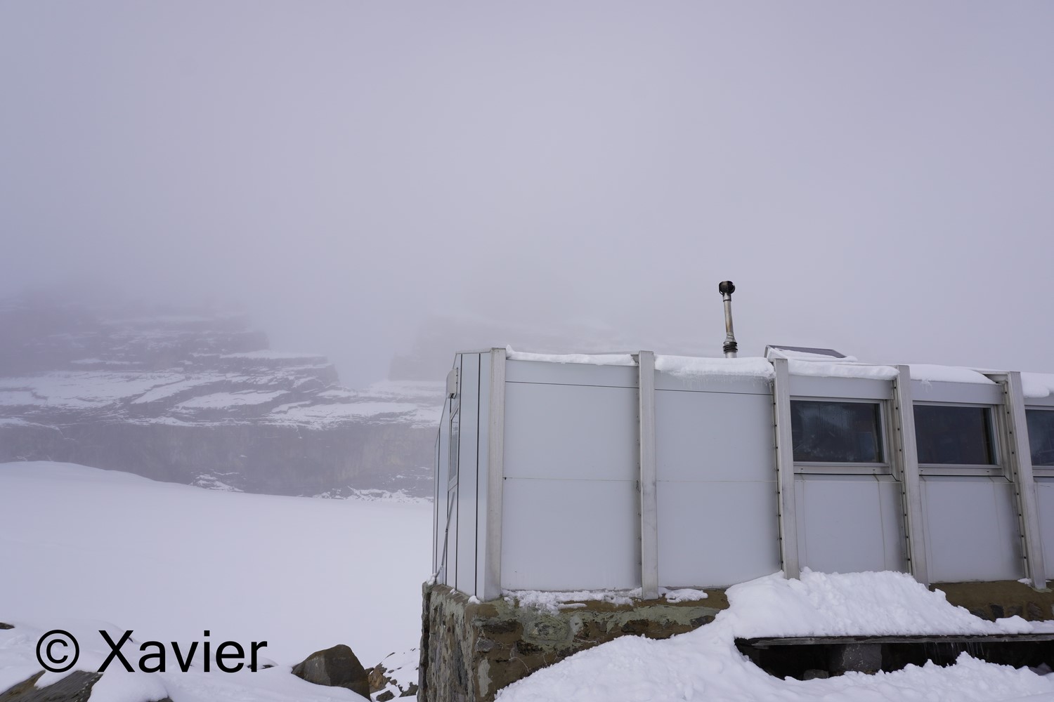 I went inside the refuge to eat my sandwich, the weather does not improved, it continued snowing, always a lot of fog towards Dents du Midi.