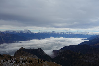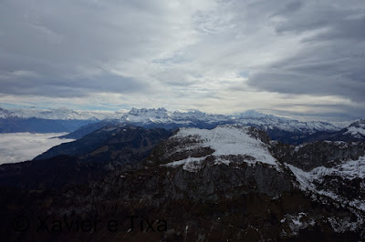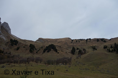 Com 35 minutos de caminhada passo no Lac de Taney, continuo para Montagne de Loz, mesmo caminho que fiz para as Cornettes de Bise, no ponto 1757m saio à direita rumo a NE, subindo para La Combe, deste ponto subo por um trilho evidente pela face Sul do Les Jumelles, pouco antes de atingir a aresta dou com um primeiro grupo enorme de bouquetins, curiosos com a Xarah, fiquei por ali uns 15 minutos a apreciar aqueles belos animais.