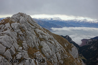 Retomo a caminhada e pouco depois chego à aresta Oeste do Les Jumelles, este pico tem uma antena meteorológica e duas cruzes, conta com algumas passagens T4, que podem ser evitadas pela face Sul sendo a face Norte constantemente escarpada.