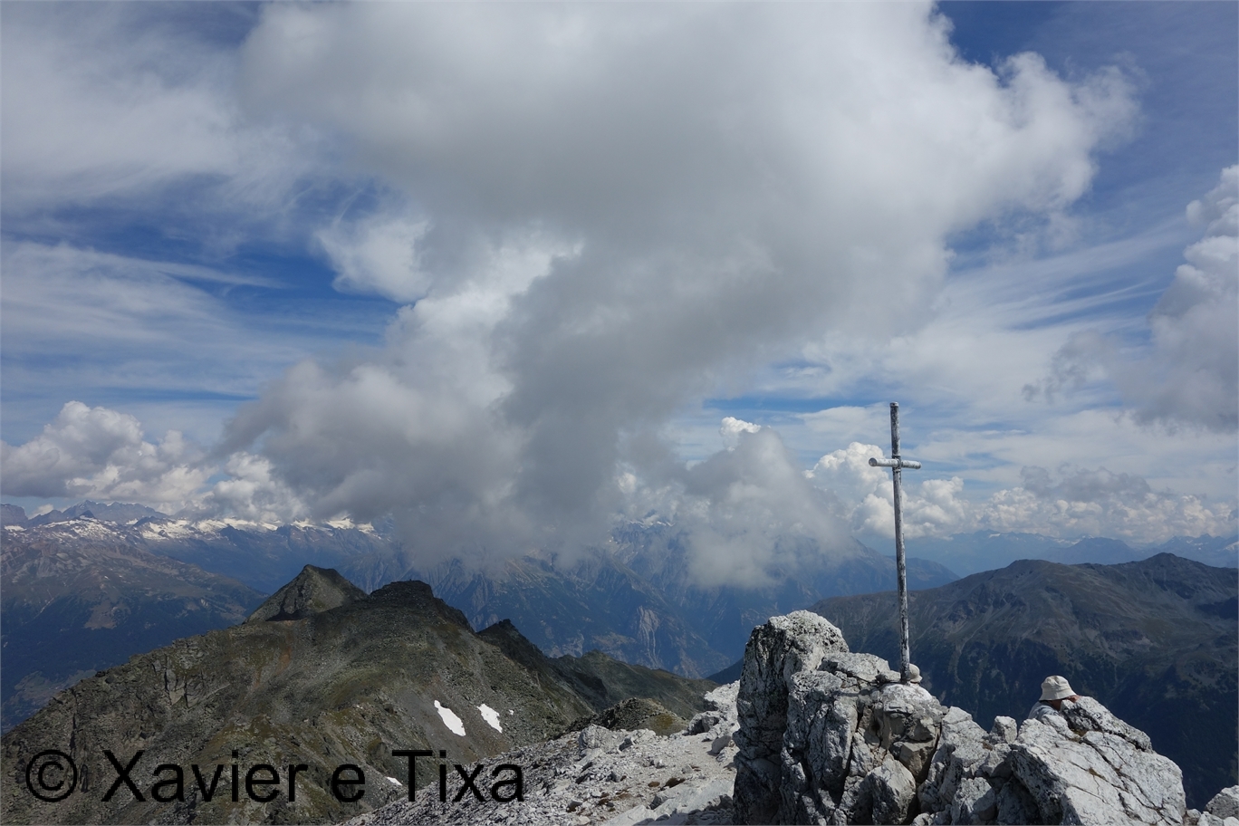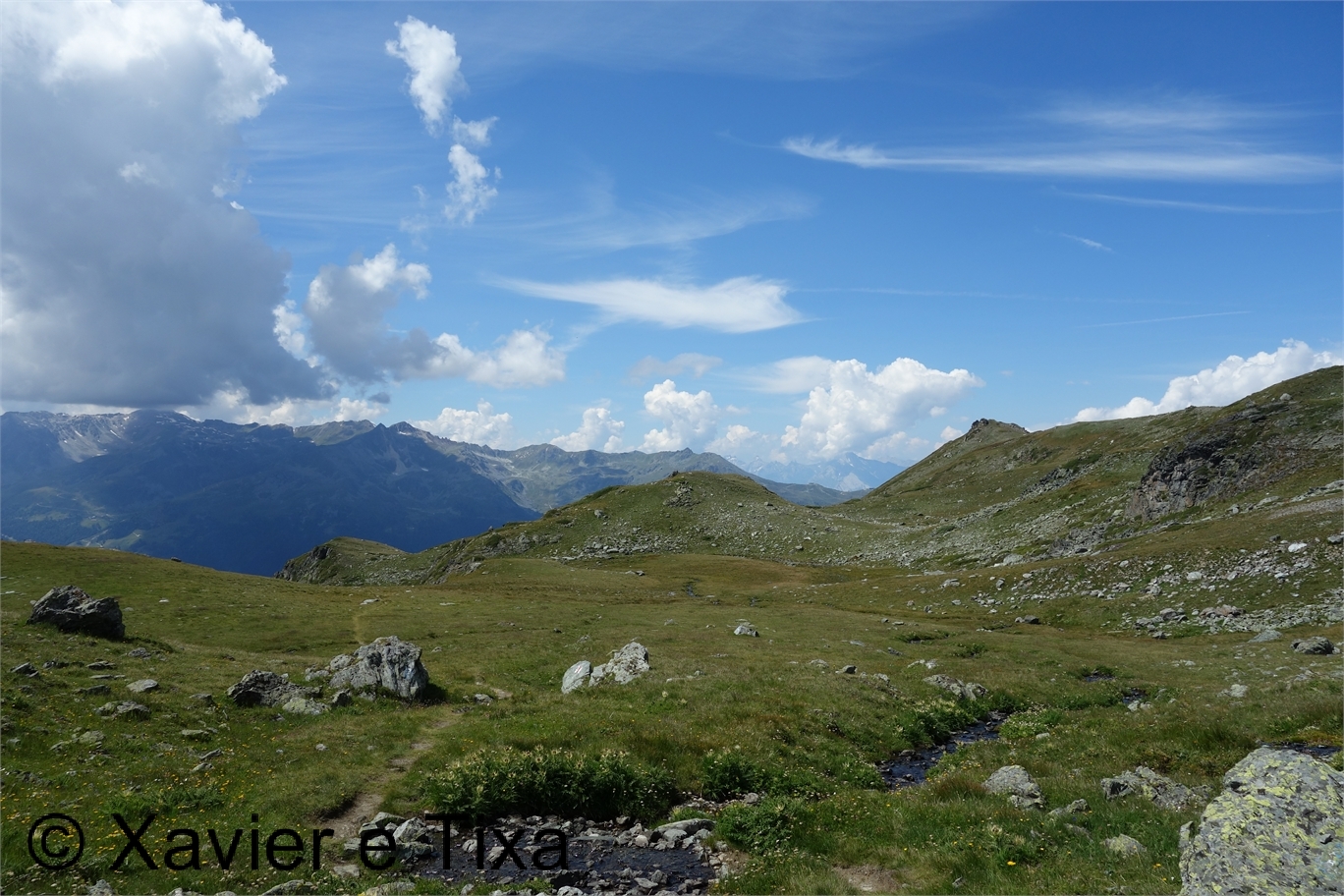 Alguns registos no pico e desci para o Pas du Bouef(2817m), aponto para sul na direcção do trilho dos colos alpinos que encontro pouco depois, passo no lago e ladeio a encosta rumo a Tignousa, passo no observatório François-Xavier Bagnoud e 20 min. depois estava no local de início, com 18km percorridos em 3h30m.