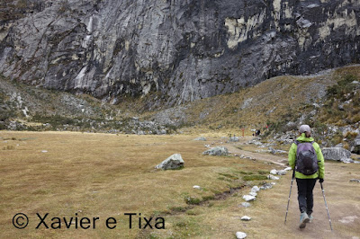 Percurso super conhecido, sobretudo para aclimatação, fomos a uma agência perguntar quanto ficaria, fizemos as contas e ficava o mesmo preço que se fôssemos com colectivos, a diferença é que em Yungay tínhamos que esperar uma hora para um outro colectivo então decidimos ir com uma agência, o porreiro é que não funciona como visita guiada, cada um segue ao seu ritmo e o guia fica com os últimos, o percurso é nítido e não tem como enganar, aqueles turistas com a mala Channel partiam-nos todos, as poses para tirar fotos e tudo mais, chegámos à Laguna 69 com 2h15m de caminhada, a Tixa depois das experiências que passou estava com um pouco de receio de subir aos 4600m mas tudo se passou bem.